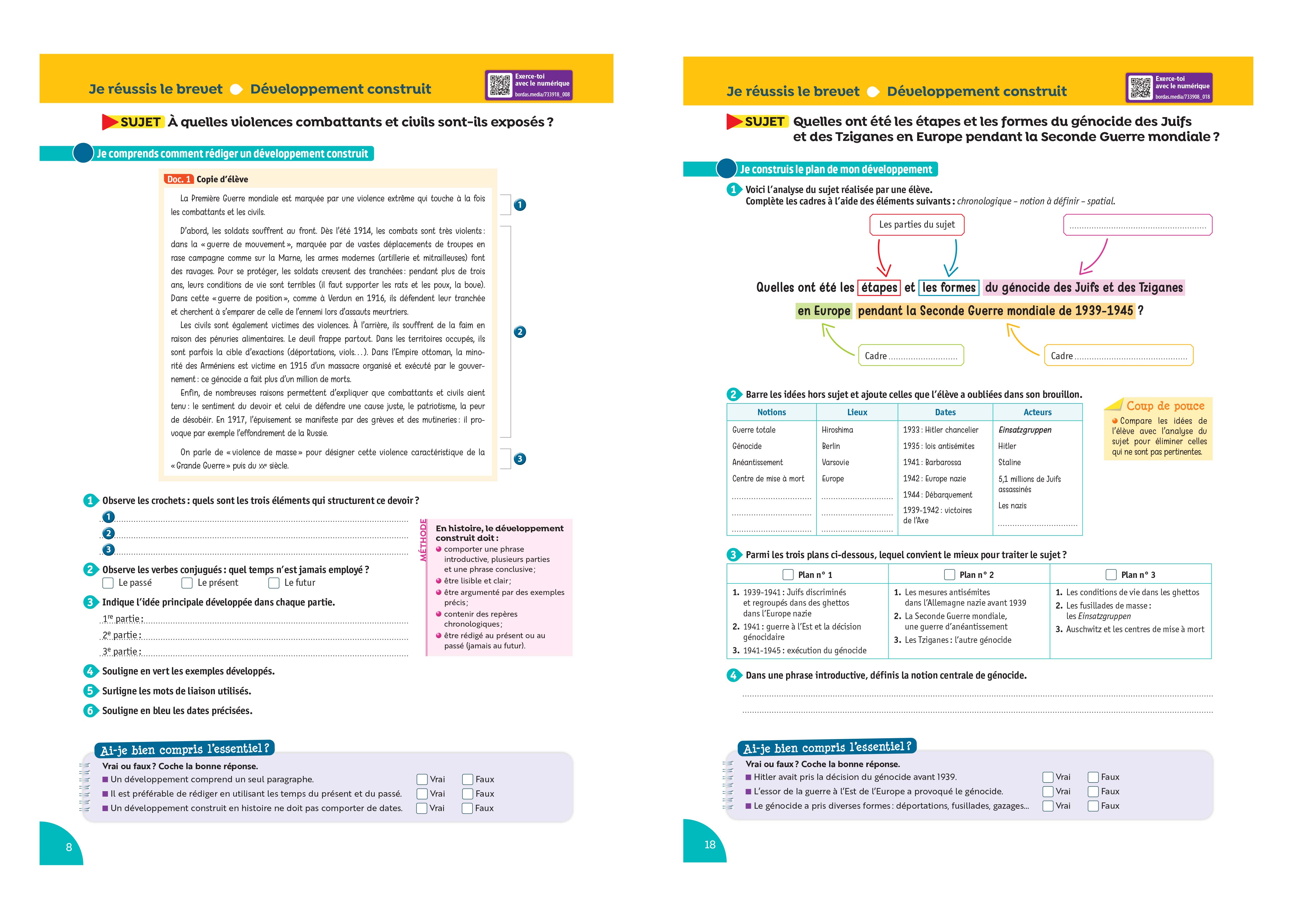 • Développement construit avec des aides méthodologiques pour rédiger selon les attendus du DNB
