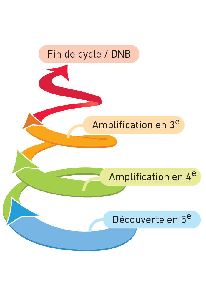 Chers collègues, comme vous le savez, il est préconisé de spiraler les connaissances et compétences du programme de Technologie sur les trois années du cycle 4 afin de les voir plusieurs fois et ainsi permettre leur acquisition progressive par les élèves. Les bases découvertes en 5e sont ainsi revues et amplifiées en 4e et en 3e.