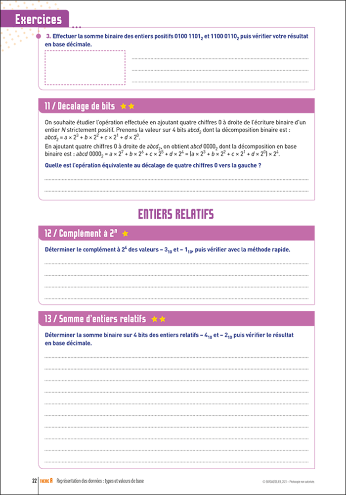 - Les étoiles permettent d’identifier la difficulté des exercices.