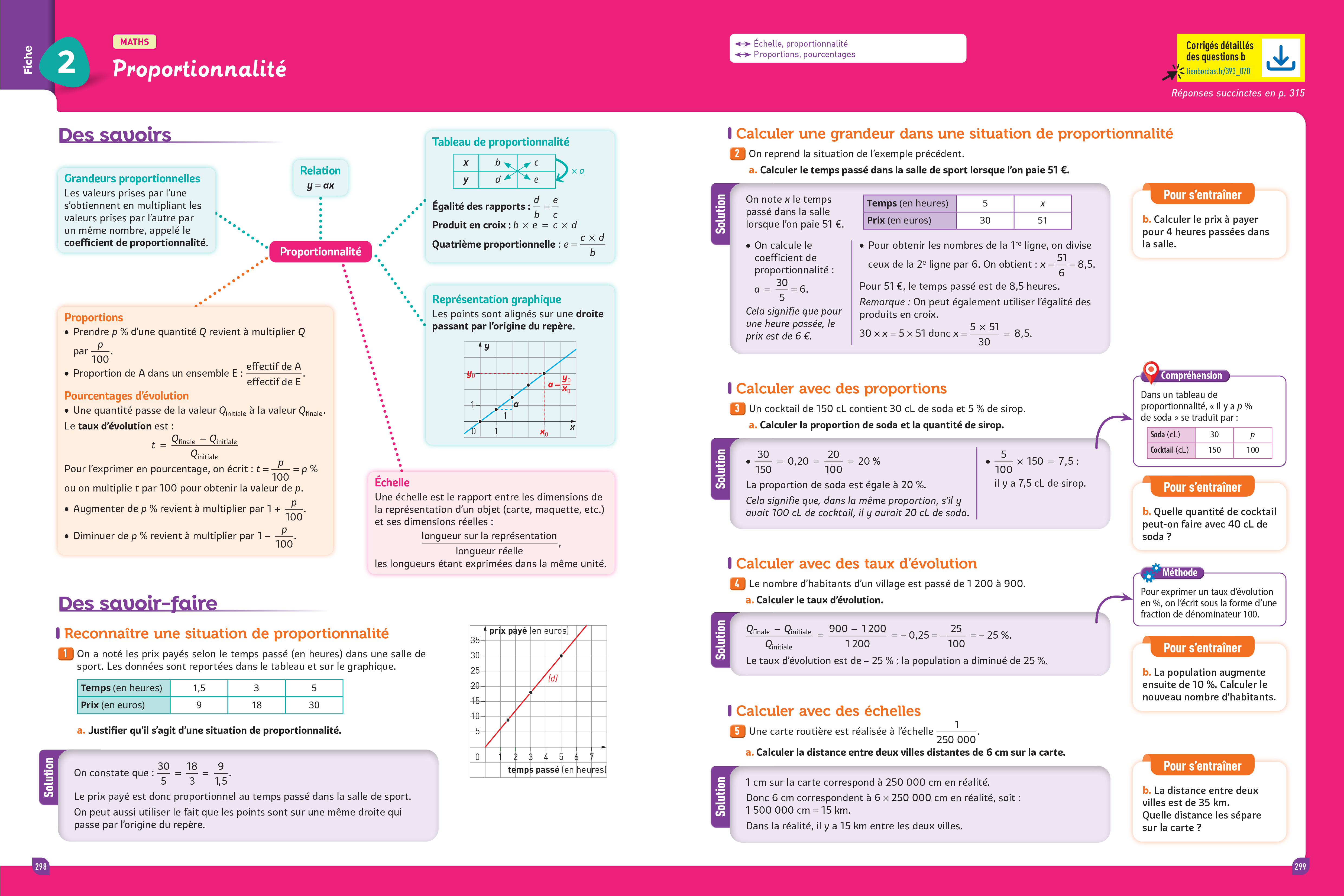 - 7 fiches de maths en fin d’ouvrage permettent de revoir et travailler les savoir-faire mathématiques indiqués par une double flèche ↔ dans le nouveau programme.