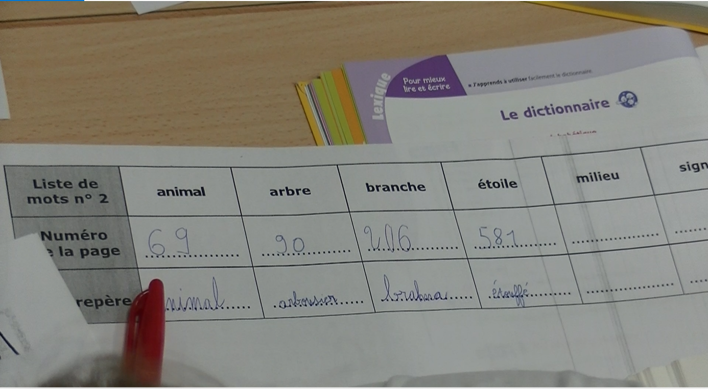 Voici un exemple de démarrage d’une séance longue en ateliers : « Le dictionnaire », ateliers fixes avec synthèse finale