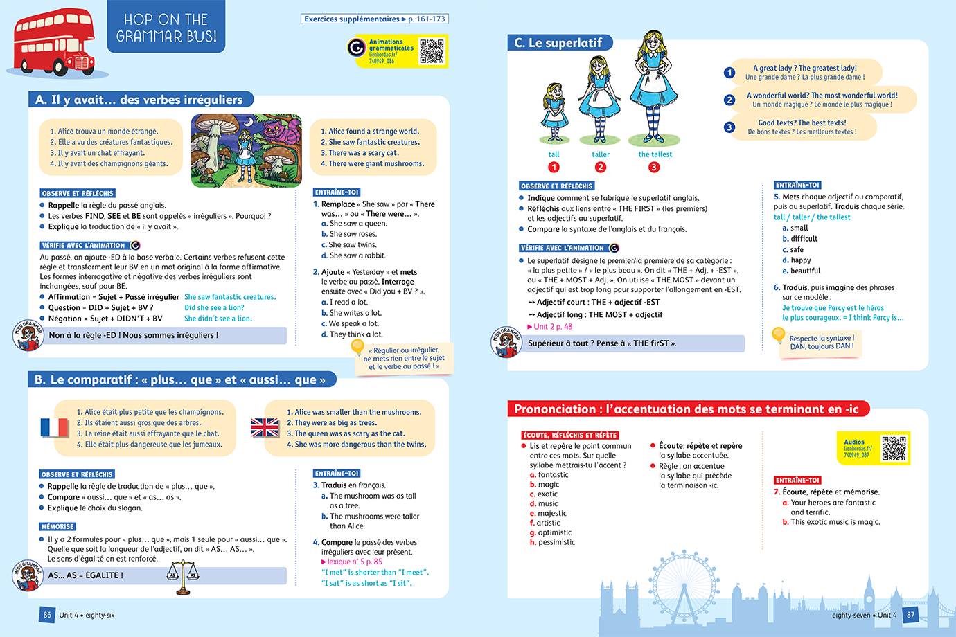 - Une double-page pour fixer la grammaire et la prononciation
