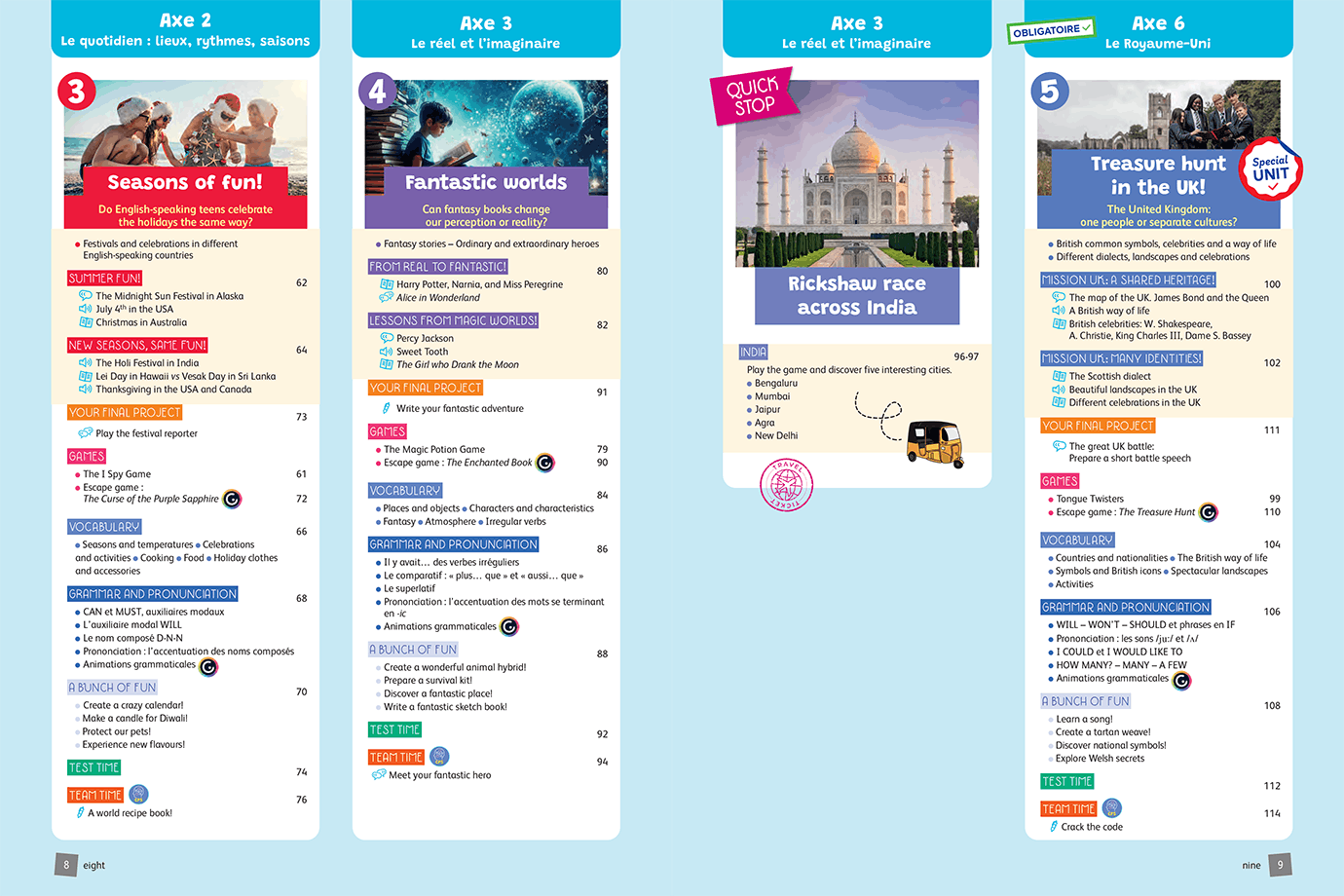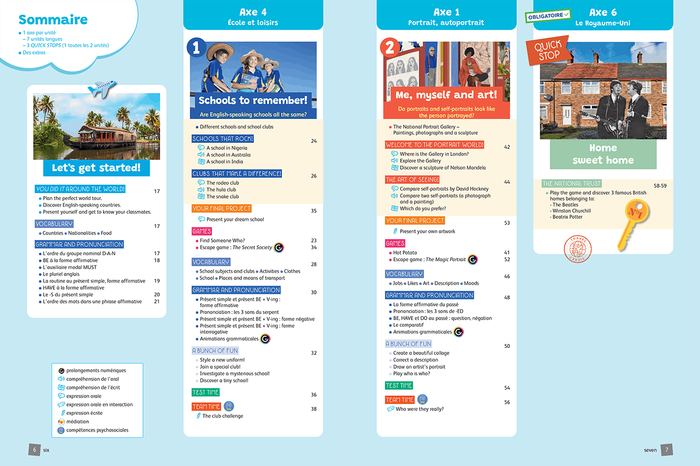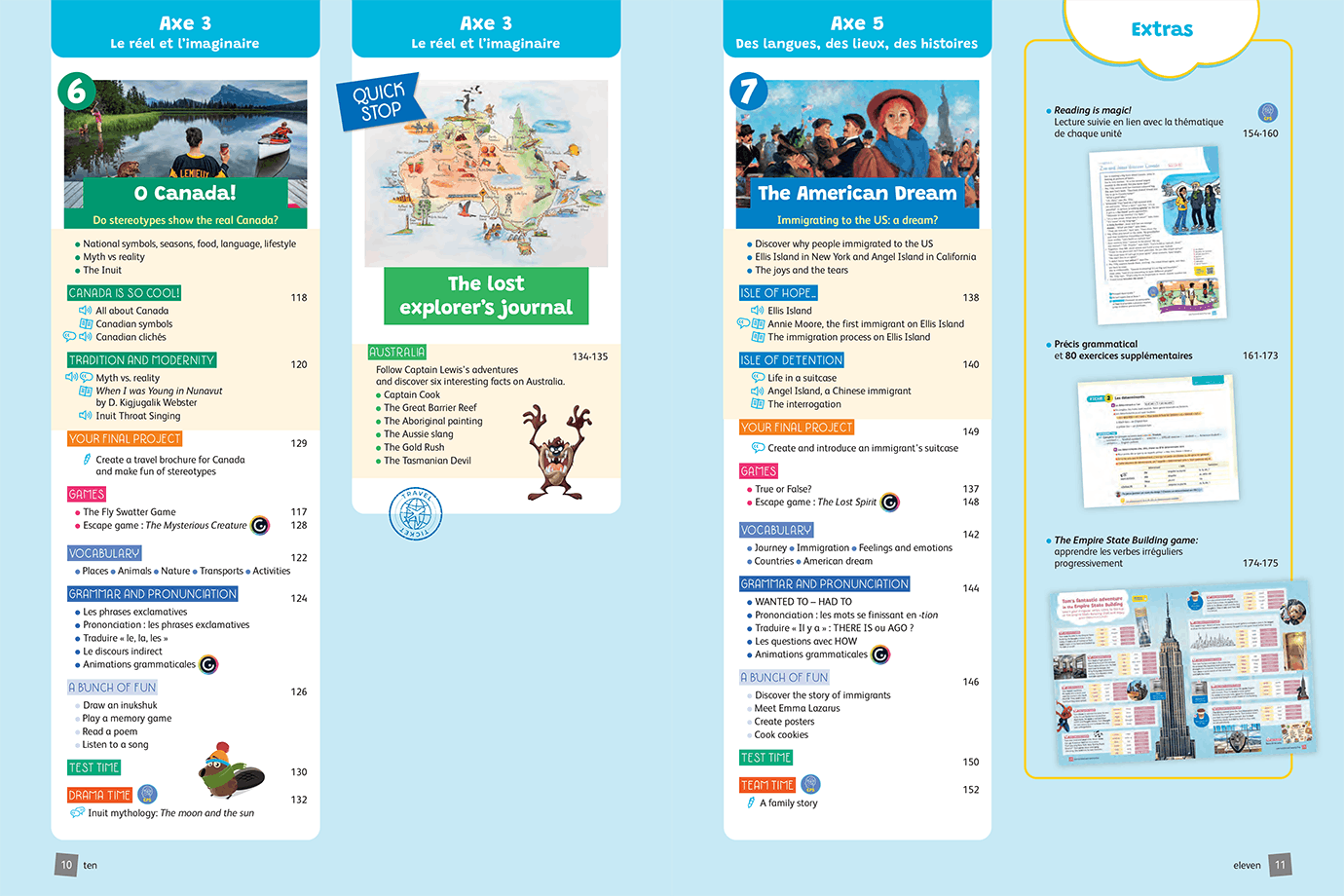 - 7 unités longues + 3 Quick Stops (séquences courtes et ludiques) pour exercer votre liberté pédagogique et vous adapter au rythme de votre classe.